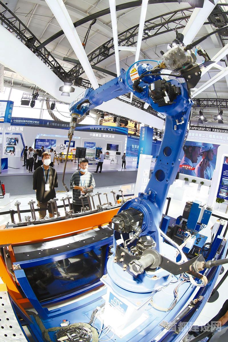 中建二局现场操作展示核电埋件焊接机器人 ■记者 周宇杰/摄
