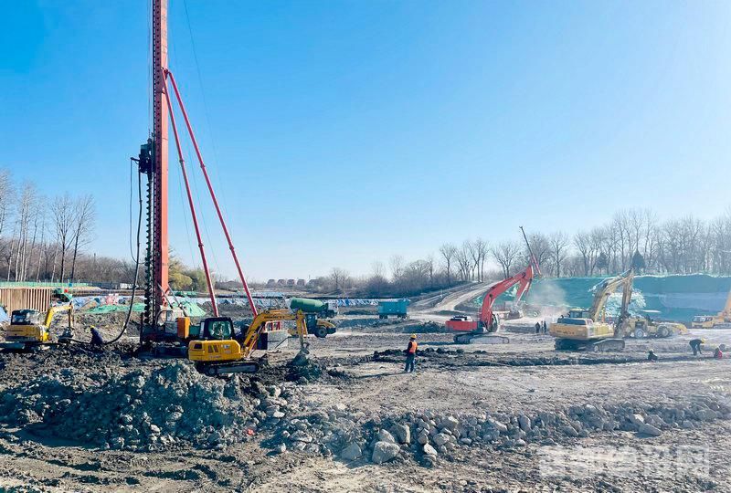 在施工现场,直径60厘米、长8米的水泥粉煤灰碎石桩正在以每天100余根的速度,快速插入河床地基中。本次施工,将会插入1100余根这样的桩基。施工人员介绍,相比水泥搅拌桩,水泥粉煤灰碎石桩可以有效保证孔深、孔径等施工参数,不仅可以确保施工质量,同时在工期方面,也大幅优于后者。