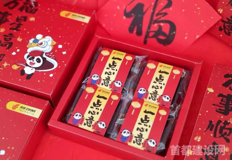 春节期间,国航由北京(首都)、成都、上海、重庆、杭州、天津、呼和浩特、武汉等地出港的航班上,两舱全餐别和经济舱正餐时段,特别配备这些定制的新春开运糕。四种口味的糕点将随机搭配,为旅客送上“一点心意”。