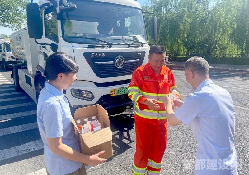 近日,北京迎来持续高温天气。炎炎烈日下,西城区区属国企各行业的一线劳动者们顶着酷暑,直面“烤”验,坚守岗位,守护着城市的有序运转。环雅丽都公司积极开展“夏季送清凉”活动,为坚守岗位的“城市美容师”送去防暑物资与贴心关怀。“我们科学调整了作业时间,在午间高温时段增加机械化清扫,减少一线职工的户外作业时间。”相关工作人员介绍,目前,各分公司积极落实高温应急预案,加强作业巡查和健康监测,通过宣传栏张贴防暑降温小贴士、在微信群推送防暑知识等方式加大健康知识宣传,开展常态化安全教育,向职工讲解中暑的预防知识,并发放藿香正气水、风油精等防暑药品。