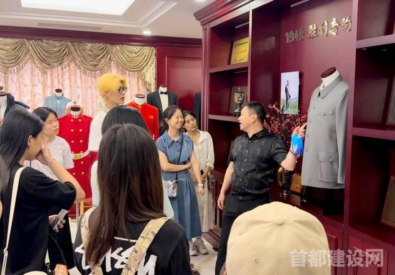 研学首站,学子们来到红都东交民巷旗舰店。在这里,他们不再是课堂上的聆听者,而是商业场景的亲历者:近距离观察资深师傅精准量体,聆听设计师为客户构思高定提案,切身感受高端定制服务的商业逻辑与人文温度。随后,学子们步入红都文化纪念展览馆,一部鲜活的服饰史在眼前铺陈。从新中国成立初期的经典中山装演变,到见证重大外交时刻的国宾礼服档案,再到闪耀奥运赛场的“中国风采”,每一件展品都无声地诉说着服饰与国家叙事、时代审美的深刻交融,为学子们解码了“衣以载道”的文化基因。