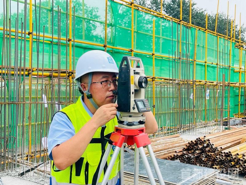当北京开启“汗蒸模式”,在昌平龙泽园集租房项目建设工地上,中建二局三公司的测量员们正以汗水为墨、仪器为笔,勾勒着城市安居蓝图。从业19年的杨树强,便是这支测量队伍的“主心骨”,在38摄氏度的热浪中,他用脚步丈量土地,用专注校准精度,守护着工程建设的“第一道防线”。