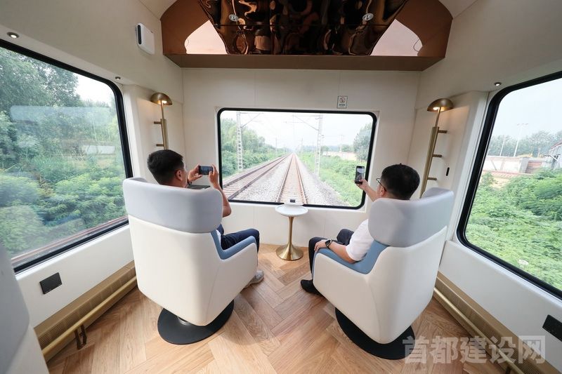 北京车辆段北京库检车间党支部书记马力介绍,本次列车对车辆内部硬件设施进行了全面升级改造。相较于传统旅游列车,精心规划了观光、主题娱乐及餐饮等丰富体验,同时增加了全景和宽幅车窗,创新采用卡座和对窗座椅设计,并搭配折叠桌板,极大地方便了旅客互动和临窗观景,让旅客在这趟旅游列车上拥有新奇的乘坐体验。同时,为了保证本次列车顺利开行,北京车辆段重点围绕上部设施、空调设备、各种电器以及卫生间等服务保障设施开展精检细修。此外,安排4名经验丰富的骨干车辆乘务员负责途中动态监控列车运行状态,最大程度满足旅客途中所需,为本次旅游列车安全运行保驾护航。