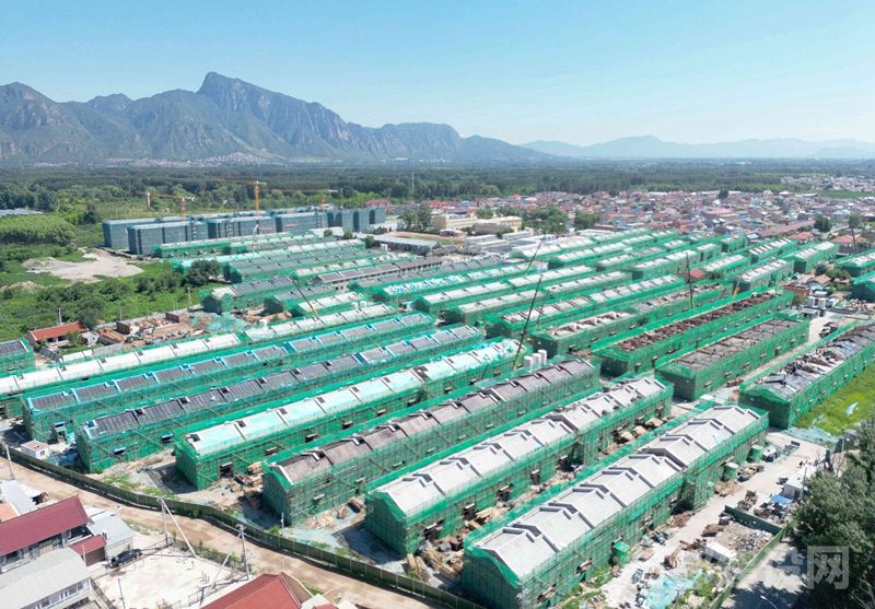 项目分为北区和南区两部分。其中,北区工程由住二公司负责施工,建筑面积约3.12万平方米,包括7栋住宅楼和1栋配套设施。该工程于2024年10月开工,7栋住宅楼主体结构率先于今年5月份封顶,目前已全部完成二次结构砌筑和样板间装修,正在进行屋面防水层作业。下一步将全力推进室内外装修,预计10月底全部完成装修。同时,9月中旬将启动小市政及美丽乡村施工,预计今年年底完成全部施工任务,有望比原计划提前近5个月竣工。南区由住总集团工程总承包二部负责施工,建设规模约8.44万平方米,包含77栋合院及相关配套设施(密闭式垃圾处理站、村委会等公共服务设施),近期实现主体结构封顶,现已转入室内装修与配套设施建设阶段。“安置房建设承载着群众对美好生活的向往,更是党和政府保障民生的庄严承诺。”住总集团工程总承包二部项目负责人表示:“项目团队克服作业点多面广、极端天气等不利因素,高峰期投入800余名建设者、20余台机械设备协同作业,力争让村民早日住上新房。整个项目将于2026年上半年竣工交付。”