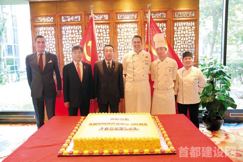 首旅集团旗下北京凯宾斯基酒店为庆祝大会制作献礼蛋糕,为党的100岁生日送上祝福。经过在20℃环境下的奋力工作,重达30磅以上的献礼蛋糕制作完成。蛋糕共分为三层,内部铺满了新鲜的水果和奶油,四周用88颗手工制作的马卡龙精心装点,百余次的手工裱花交相辉映,完美呈现献礼作品。