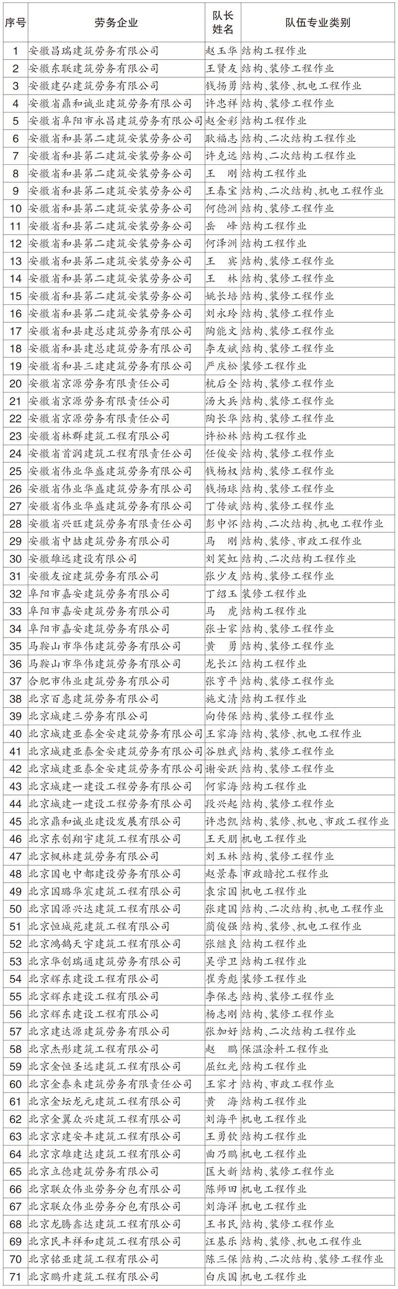 2020年度首都建筑业施工作业队和施工作业班组市场资信评价结果公布 根据《首都建筑业劳务分包及施工作业企业施工作业队伍市场资信等级考核评价实施办法》和《首都建筑业劳务分包及施工作业企业作业班组市场资信考核评价办法》,经施工作业队伍和施工作业班组自愿申报、北京建筑业人力资源协会市场资信考评委员会考核评价、网上公示等工作程序,2020 年度首都建筑业施工作业队和施工作业班组市场资信评价工作圆满完成,资信评价结果已于近期 专题 2021年03月18日 1 点赞 0 评论 656 浏览