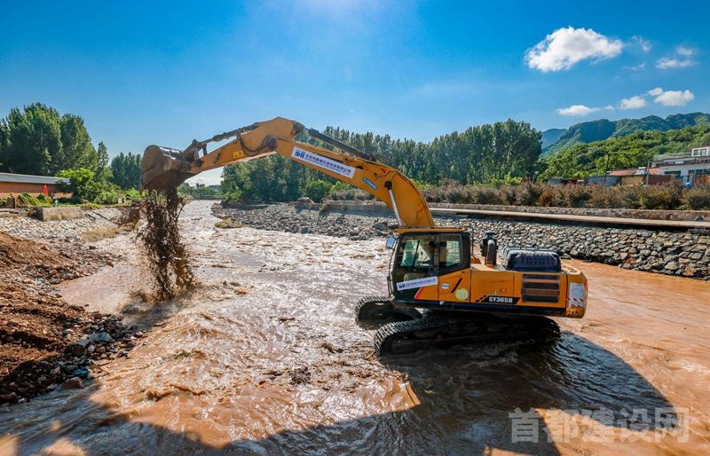 7月28日12时20分,北京建工城乡集团金河水务集团抢险队负责人高喜涛接到上级紧急指令:“密云潮河宁村新桥出现险情,立即组织力量赶赴现场!”挂断电话后,他抓起安全帽,冲出办公室。50名抢险队员听闻后即可集结,6台拖板车、4台挖掘机、2台伸缩臂抓斗车在院子里排成队列,引擎的轰鸣声与豆大的雨点声交织成出征的序曲。打通桥面泄洪通道“保持车距,注意避让!”在抢险途中,高喜涛借助对讲机不断提醒车队。13时40分,抢险队伍已在抢险点位集合完毕,随时待命。依据指挥部的部署,需将宁村新桥两侧护栏及中间隔离带进行拆除,并在桥面左右岸搭设沙